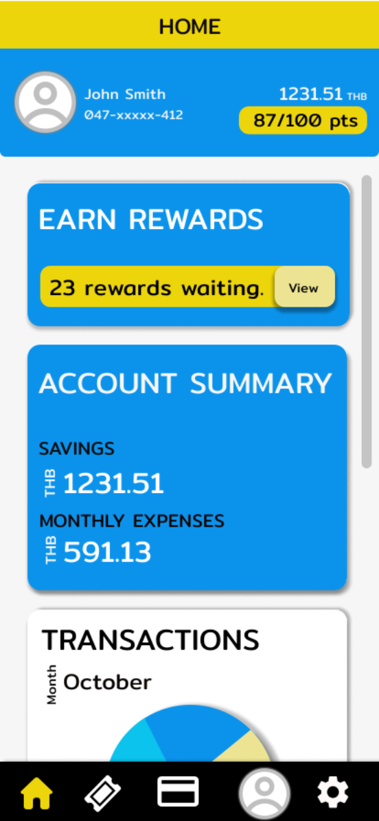 We are a new section in the application of the partnered bank. We will organize a new lotto system which users can participate by making transactions with their account in the app. Once registered users make financial transactions with the partnered bank account, users will gain points. The more transactions being done, the more points the user will get. Once the user accumulates up to 100 points, the user will get one ticket of our lotto. Then, users will be able to have fun trying out their luck with our lotto.